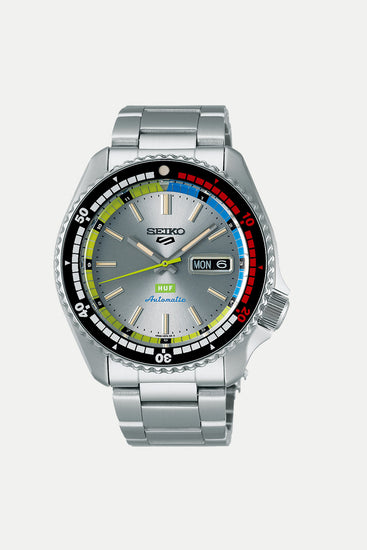 This timepiece marks the second collaboration between Seiko 5 Sports and HUF, the renowned skateboarding and streetwear brand known for its influence on urban culture and lifestyle.