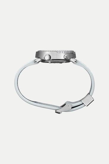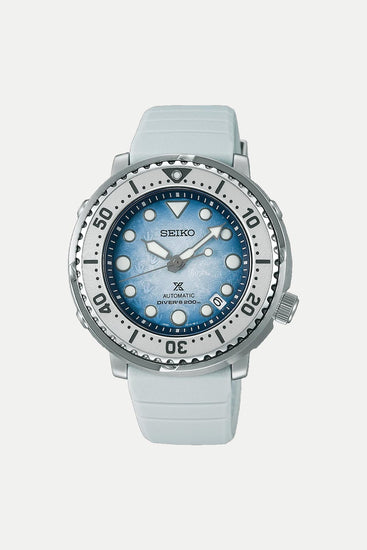 Inspired by the vast landscape of the world’s largest marine sanctuary, Antarctica, this timepiece captures the region’s stark beauty. The dial’s graduated colour and textured finish mirror the icy white and blue hues formed as light reflects across the frozen terrain, while subtle penguin footprints symbolize the fragile and declining population of its native inhabitants.